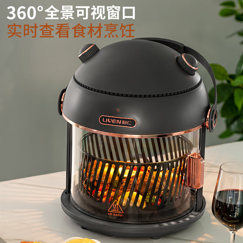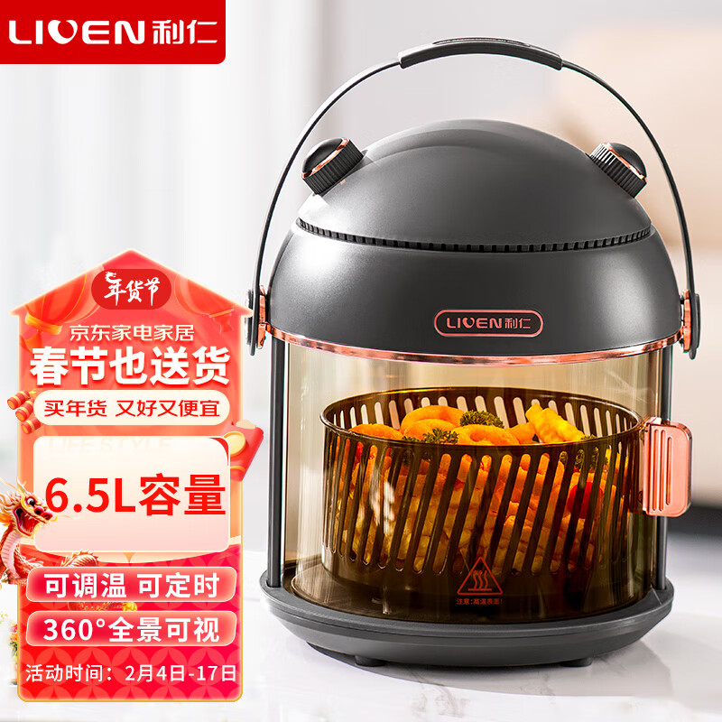 利仁(Liven)空气炸锅家用大容量全景可视电炸锅6.5升空气炸锅烤箱烘炸烤多功能薯条机K-27价格:329.00元!