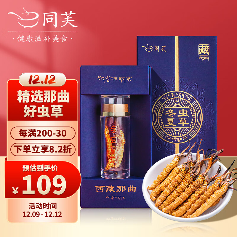同芙 冬虫夏草 西藏那曲虫草3条/g 1克装 头期新虫草高品质干货无断草 干虫草滋补营养品年货送礼价格:133.00元!