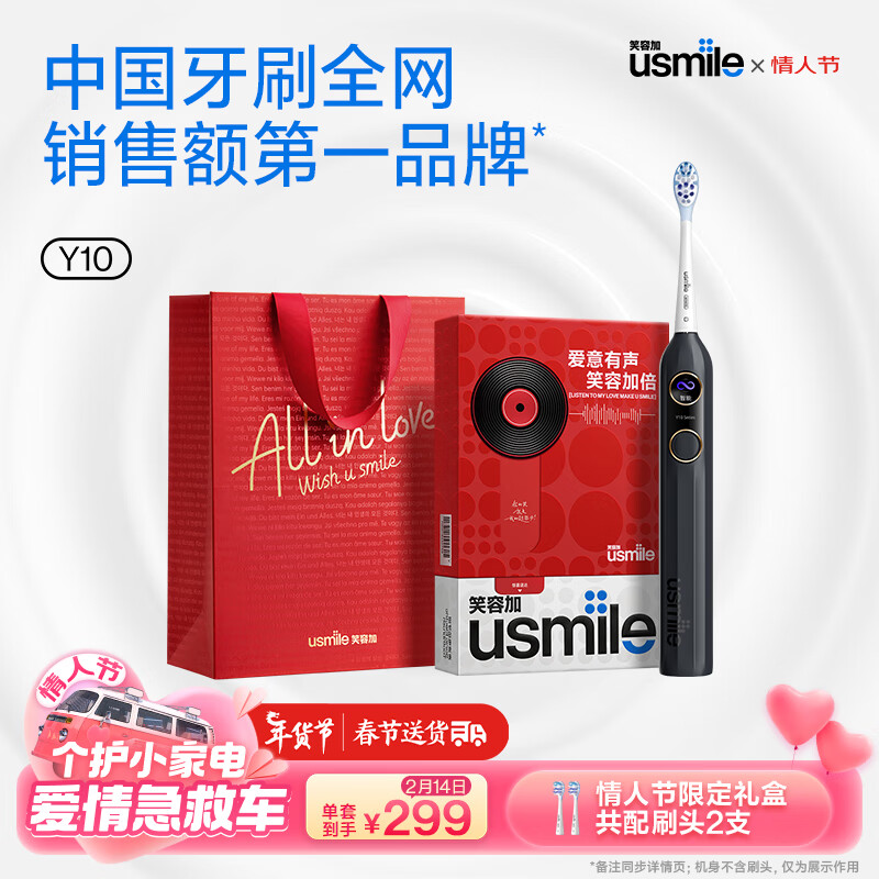 usmile笑容加电动牙刷 成人声波震动电动牙刷 情侣款送男友/送女友 Y10曜黑 新年情人节礼物价格:346.30元!
