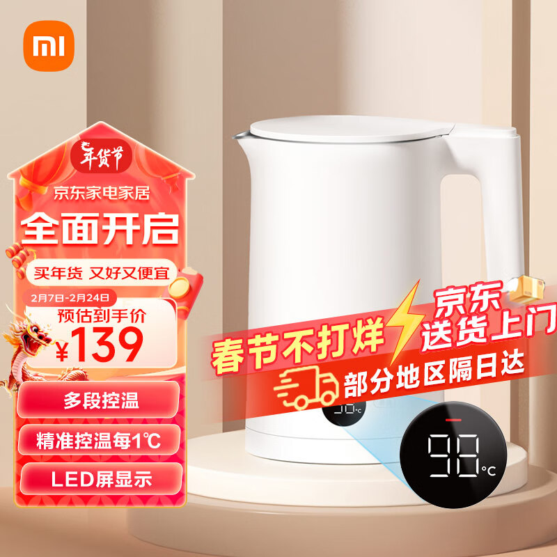 米家 恒温电水壶2 多段控温 高清实时数显 双模式煮水 1800W速热烧水价格:139.00元!