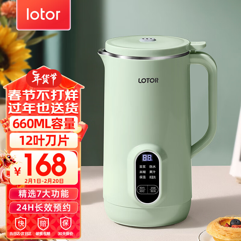 小浣熊破壁机家用豆浆机降噪长时预约加热保温迷你小型果汁榨汁高速搅拌料理机免洗免滤免泡辅食机早餐机 660ML绿色标准款价格:168.00元!