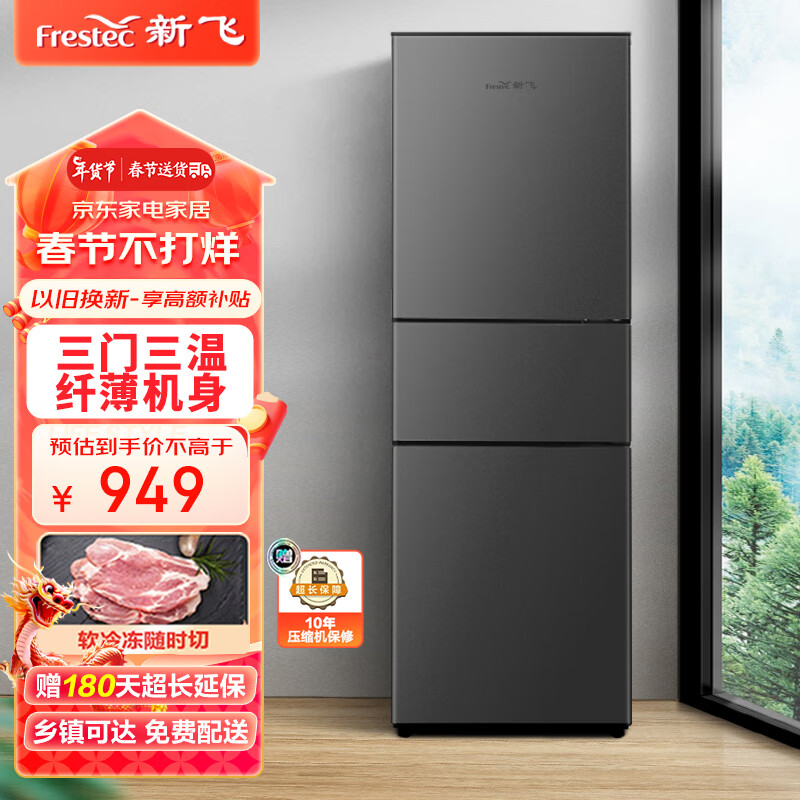 新飞(Frestec)209升三门三温区双层抽屉直冷家用租房低音节能小巧不占地软冷冻电冰箱 BCD-209KT价格:949.00元!