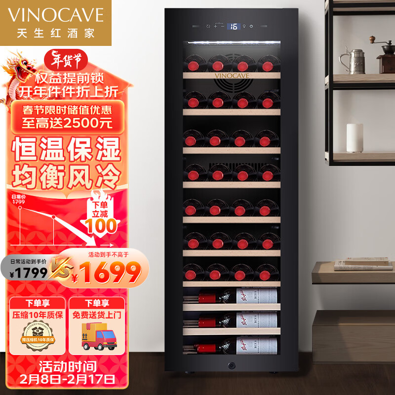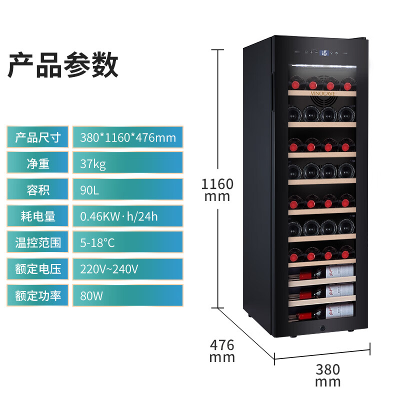 维诺卡夫(Vinocave)酒柜 压缩机风冷恒温红酒柜 家用商用客厅办公室新潮流独立式纤薄葡萄酒展示柜JC-92A价格:1799.00元!