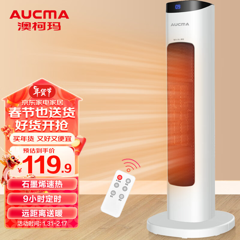澳柯玛(AUCMA)石墨烯遥控取暖器/塔式电暖气/电暖器/家用/办公室暖脚/家用暖风机/速热电热扇NF20H165(Y)价格:139.90元!