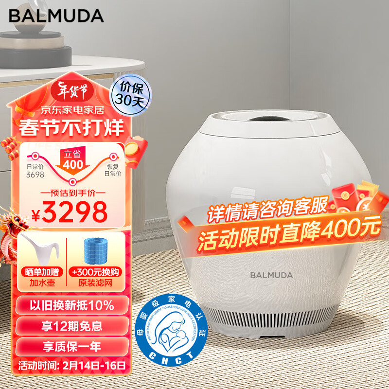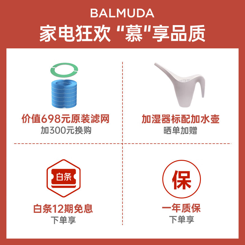 巴慕达(BALMUDA)加湿器卧室家用办公室高端无雾加湿智能恒湿空气加湿净化银离子Rain价格:3298.00元!