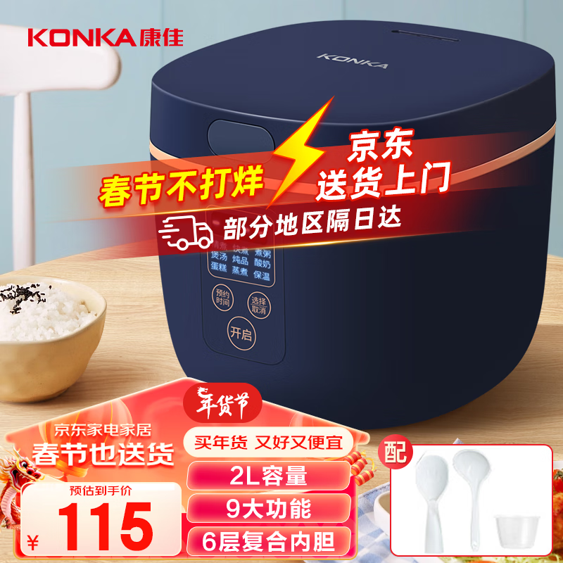 康佳(KONKA)迷你电饭煲小电饭锅 2L容量1-3人智能温控24小时预约煮饭煮粥锅 KRC-RS1价格:115.00元!