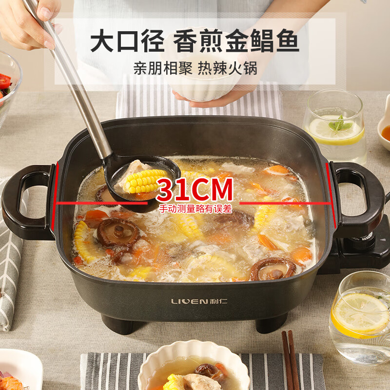 利仁(Liven)电煮锅电炒锅电火锅专用锅火锅锅具多功能小电锅多用途锅电热锅宿舍煮面泡面锅烤肉锅5.5L DHG-558价格:119.00元!