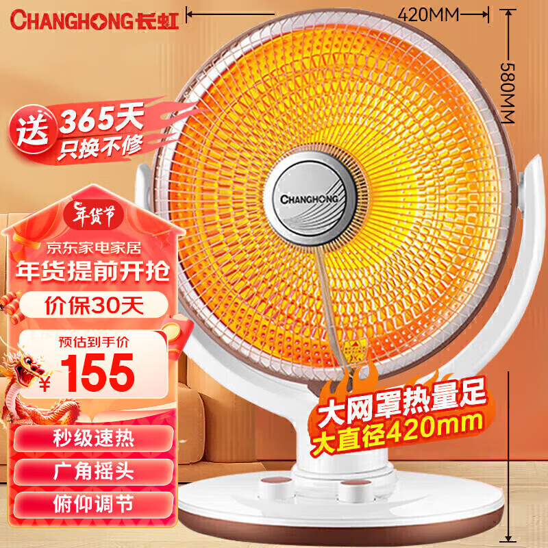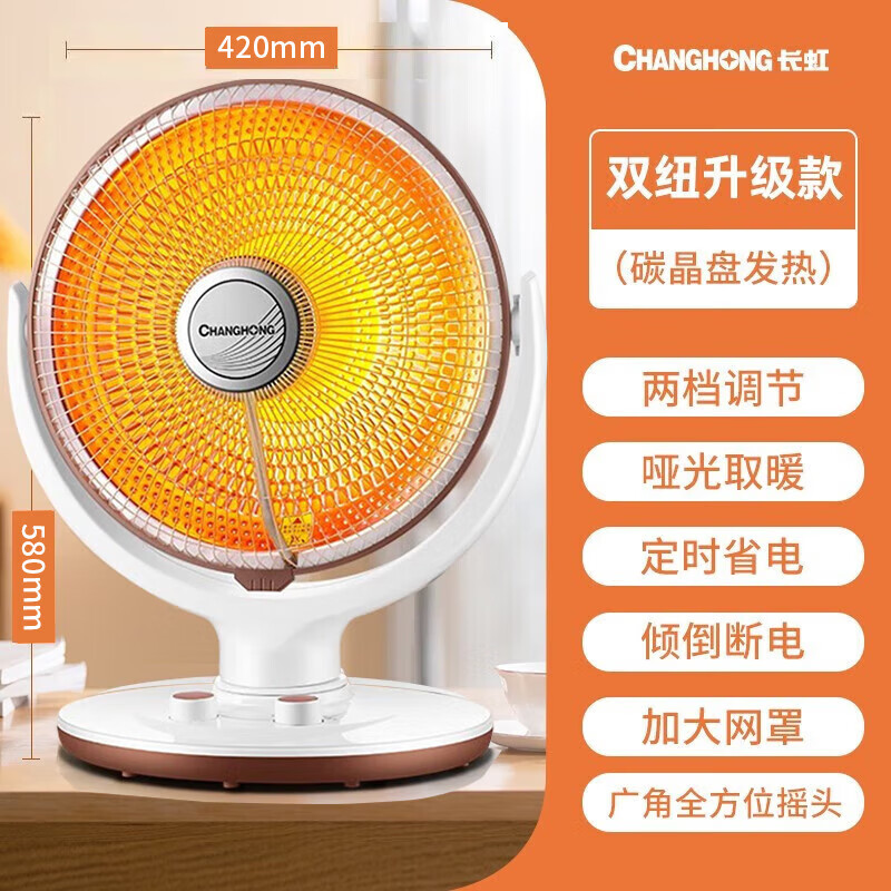 长虹(CHANGHONG)取暖器家用小太阳电暖器电暖气取暖烤火炉台地两用电热两档调节速热高度可调 CDN-RT06TQL价格:155.00元!