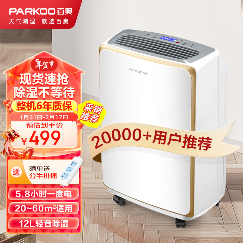 百奥(PARKOO)除湿机/抽湿机/干衣 除湿量12升/天 家用低音除湿器地下室衣帽间干衣HD165A价格:554.00元!