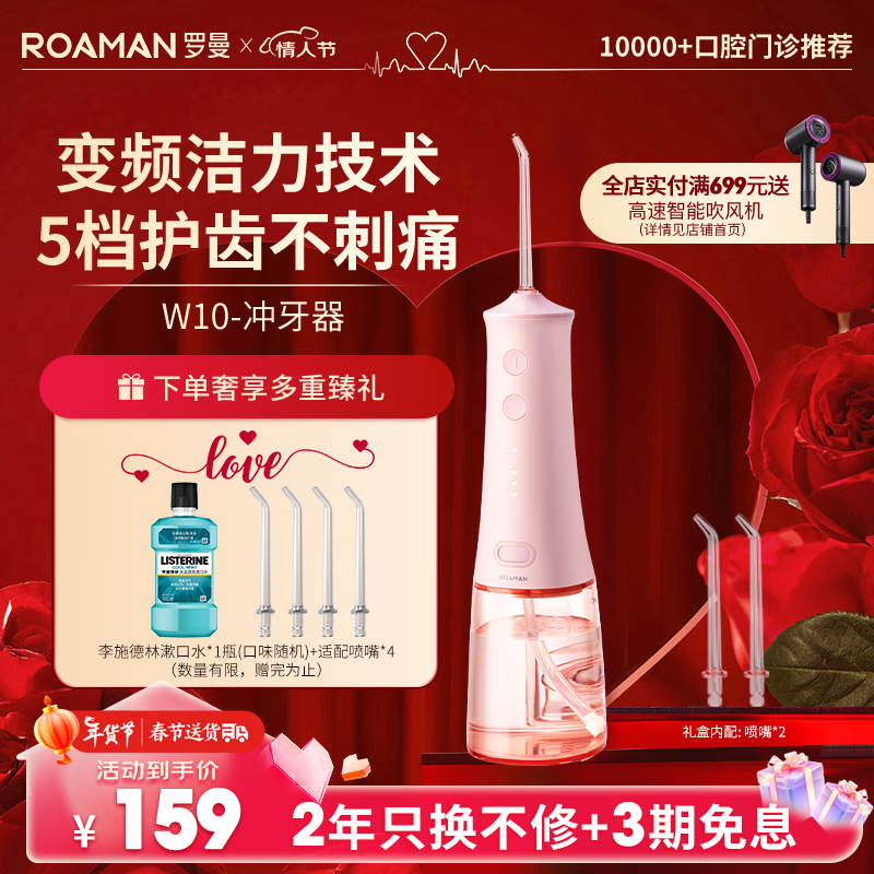罗曼(ROAMAN)小宝塔冲牙器 洗牙器 水牙线 洁牙器 洁牙机 便携式冲牙器 台式冲牙器 W10樱花粉 新年情人节礼物价格:169.00元!