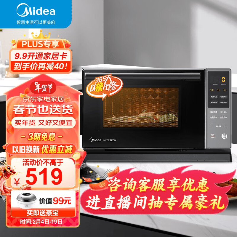 美的(Midea)微碳系列 下拉门微波炉 附烤箱功能 杀菌家用 800w变频 光波速热(PC20M5T)价格:519.00元!