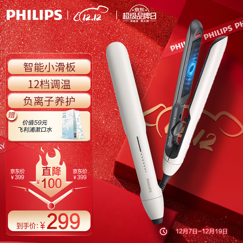 飞利浦(PHILIPS)电卷发棒 直板夹? 智能温控 卷直两用 小滑板 BHS515/05 白色价格:329.00元!