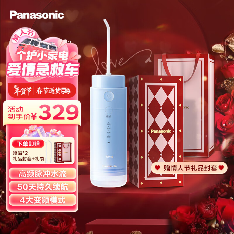 松下(Panasonic)冲牙器洗牙器水牙线 高频脉冲水流 小巧便携式伸缩小圆管 新年情人节礼物送男友送女友DJ33雾霾蓝价格:346.00元!