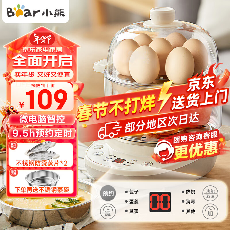 小熊(Bear)煮蛋器 双层家用多功能蒸蛋器 不锈钢早餐蒸点心蒸锅 可预约定时自动断电蒸锅 ZDQ-C14Q8价格:108.00元!