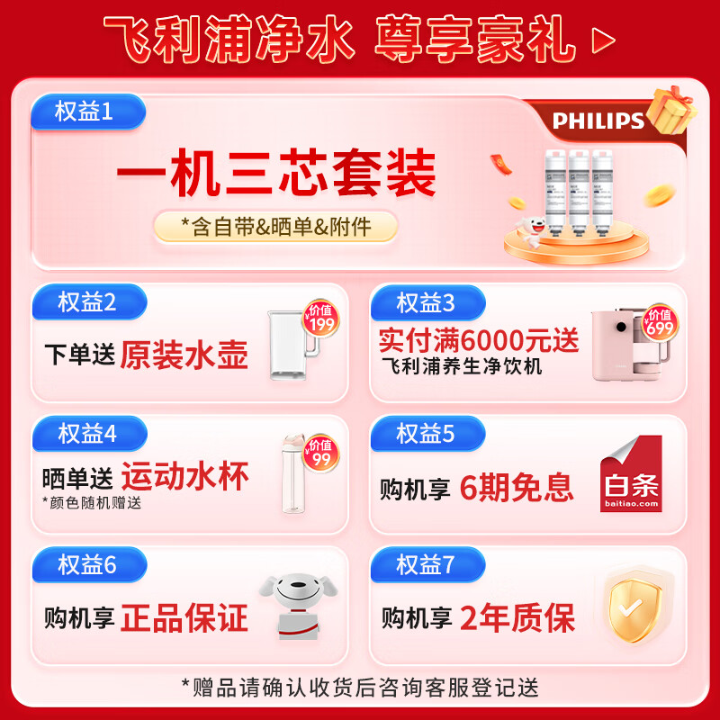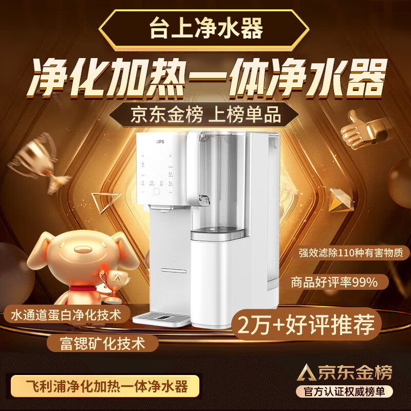飞利浦(PHILIPS)Cube家用RO反渗透台式即热净饮水机加热直饮一体机富锶矿化免安装净水器ADD6860一机两芯价格:2399.00元!