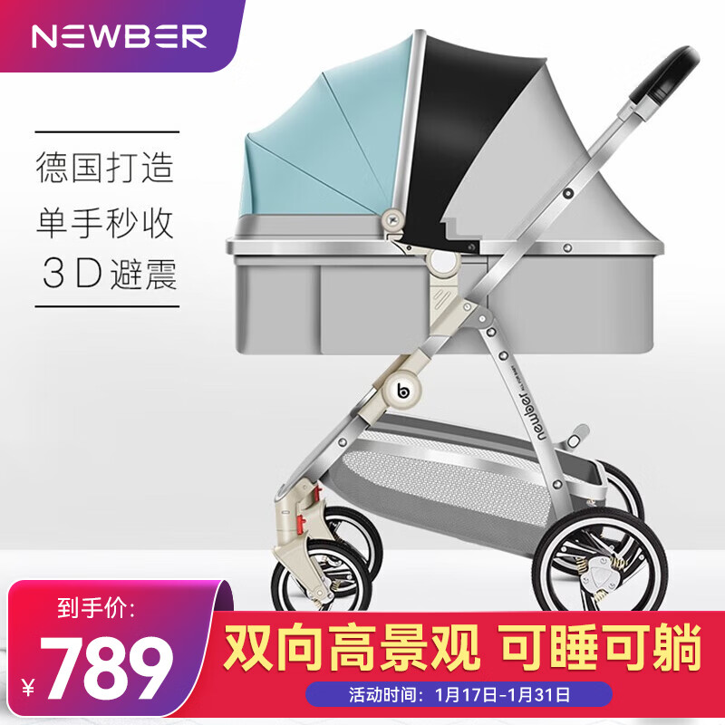 纽贝耳newber婴儿车可坐躺高景观双向手推车 湖蓝【二代遮阳防蚊版】价格:989.00元!