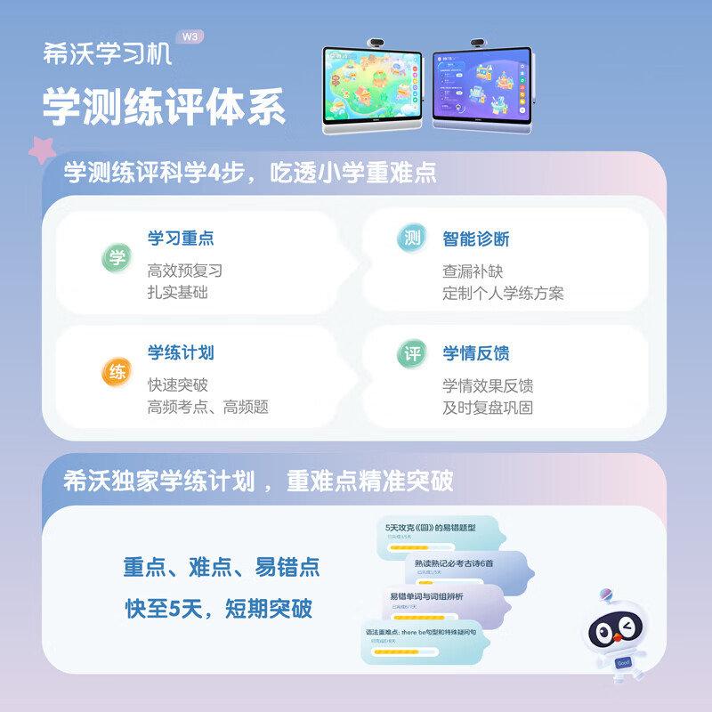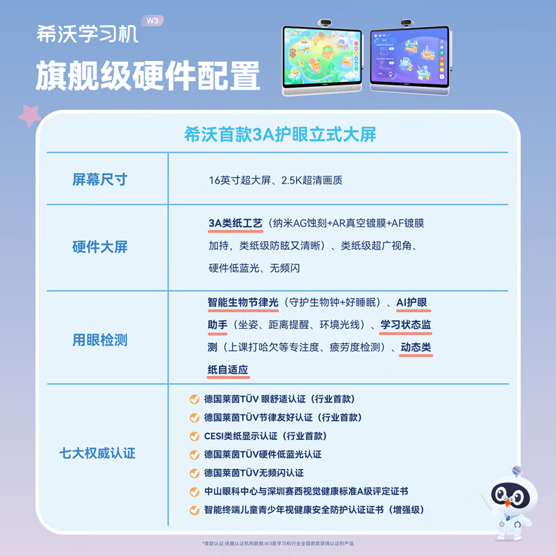 希沃学习机W3 类纸护眼大屏儿童学习平板 小学到高中AI学生平板英语早教机 8G+256G 皓月白价格:5499.00元!