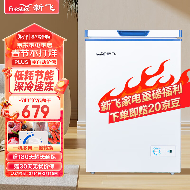 新飞(Frestec)100升冷藏冷冻转换冰柜 迷你家用一级能效 单温小冷柜BC/BD-100KHCT价格:679.00元!