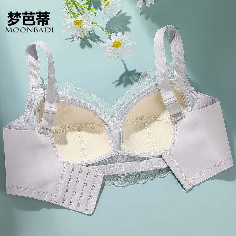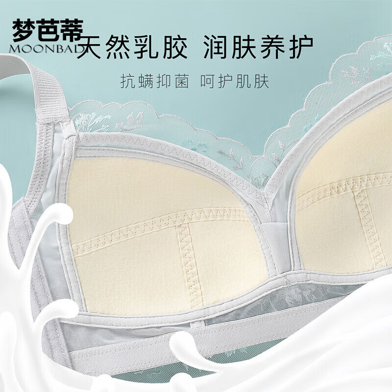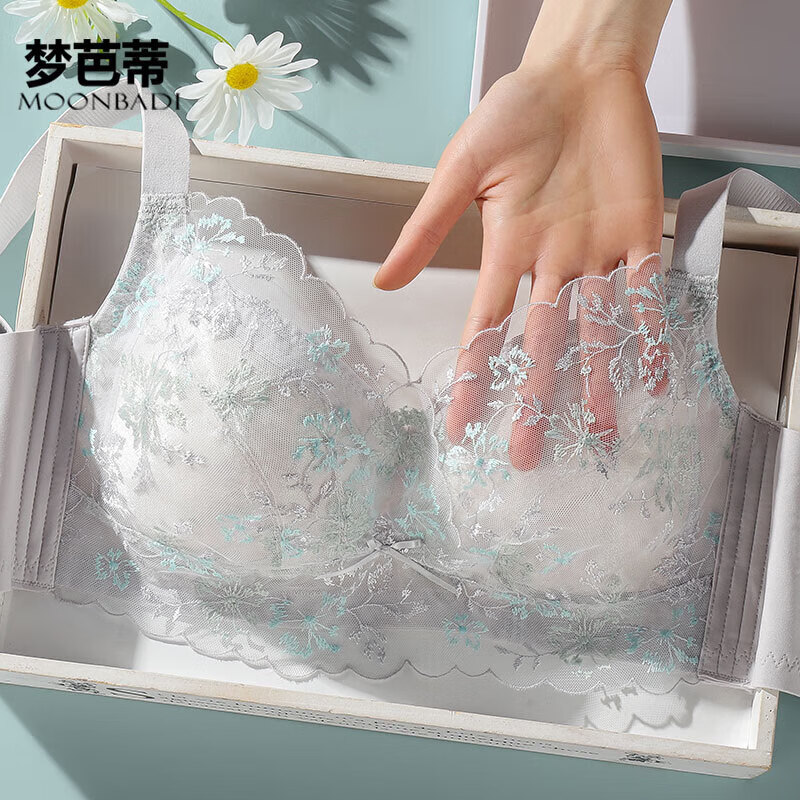 梦芭蒂内衣女刺绣乳胶文胸大胸显小薄款无钢圈收副乳胸罩 清香灰色 85E价格:139.00元!