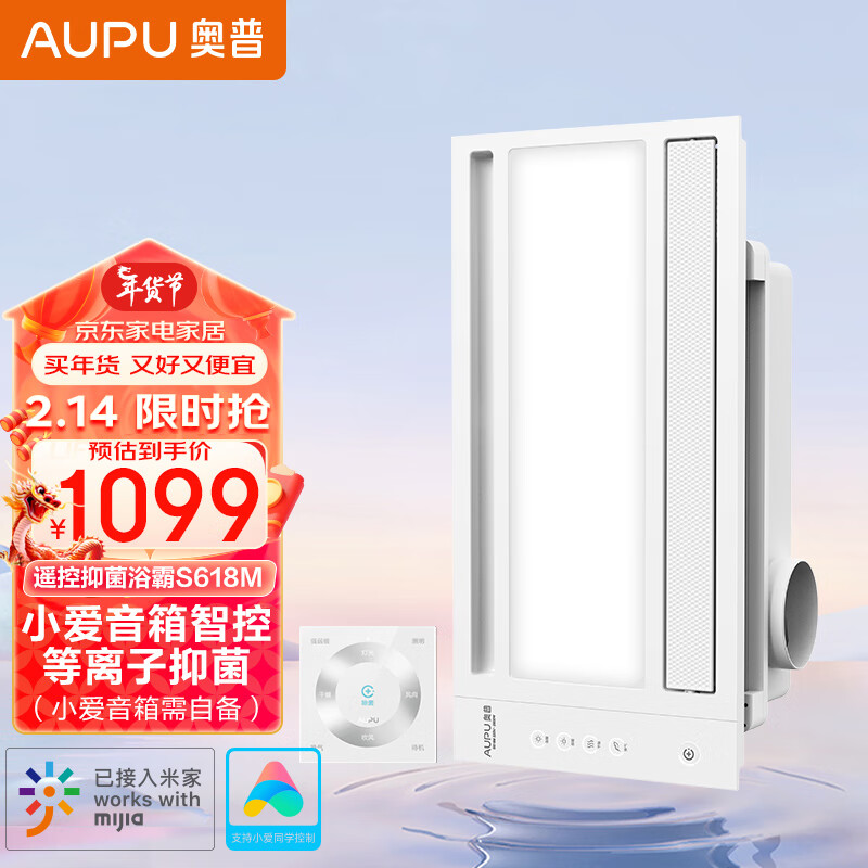 奥普(AUPU)浴霸S618M风暖浴霸 大摆页强弱风暖等离子除菌无线遥控已接入米家价格:1299.00元!