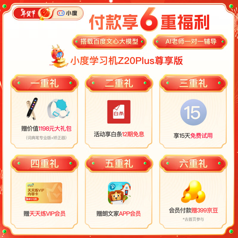 小度学习机Z20Plus尊享版(6+256G)小学到高中学生平板电脑 百度文心大模型 AI精准学 天天练培生朗文价格:3799.00元!