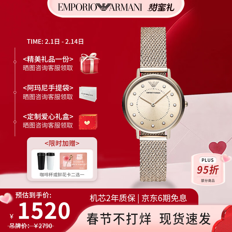 安普里奥·阿玛尼(Emporio Armani)手表女满天星钢带石英镶钻女士腕表生日礼物送女友AR11129价格:1720.00元!