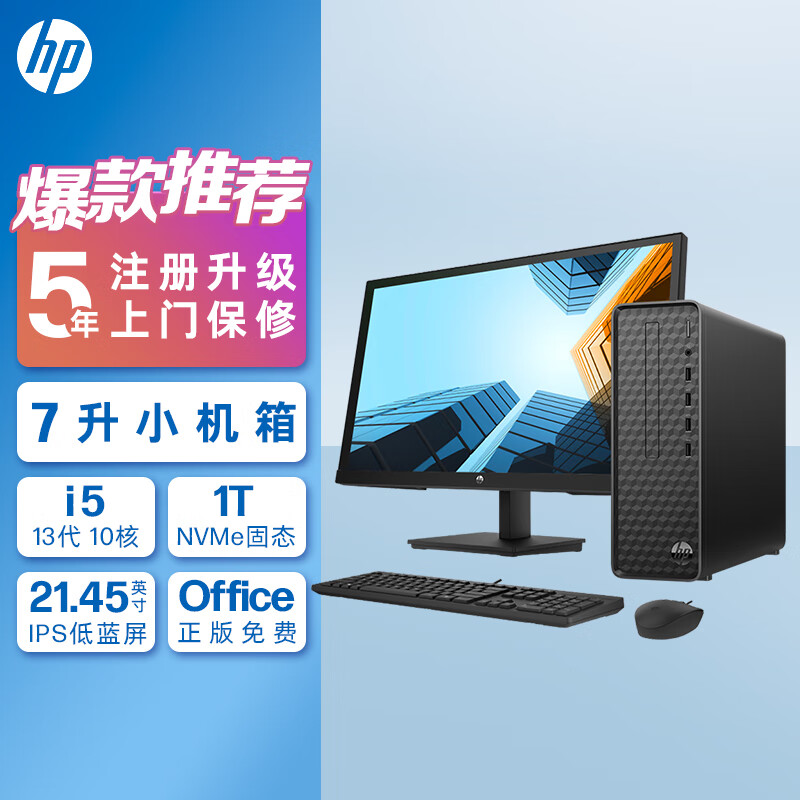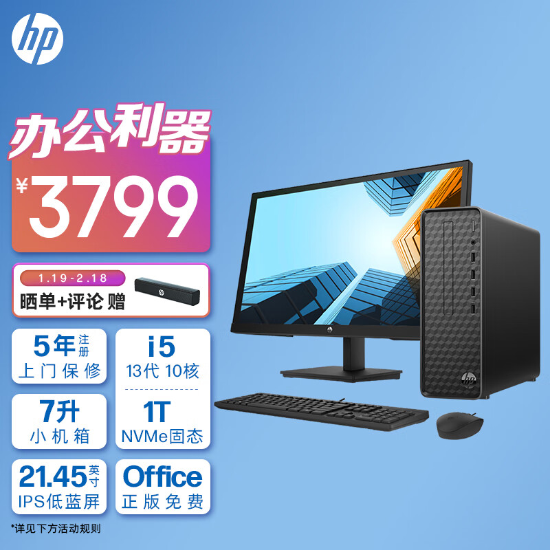 惠普HP 星Box商务办公台式电脑主机(13代酷睿i5-13400 16G 1TB固态硬盘 WiFi 注册五年上门)+21.45英寸价格:3799.00元!