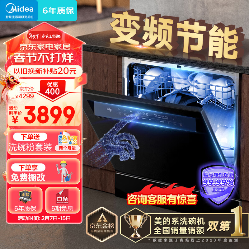 美的(Midea)10套 嵌入式台式洗碗机V8 变频节能 三星消毒 热风烘干 倾斜大屏免弯腰 家用智能 京东小家价格:5999.00元!