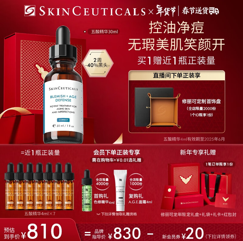 修丽可五酸果酸精华30ml护肤品水杨酸祛痘控油去黑头收缩毛孔肌男女礼物价格:830.00元!
