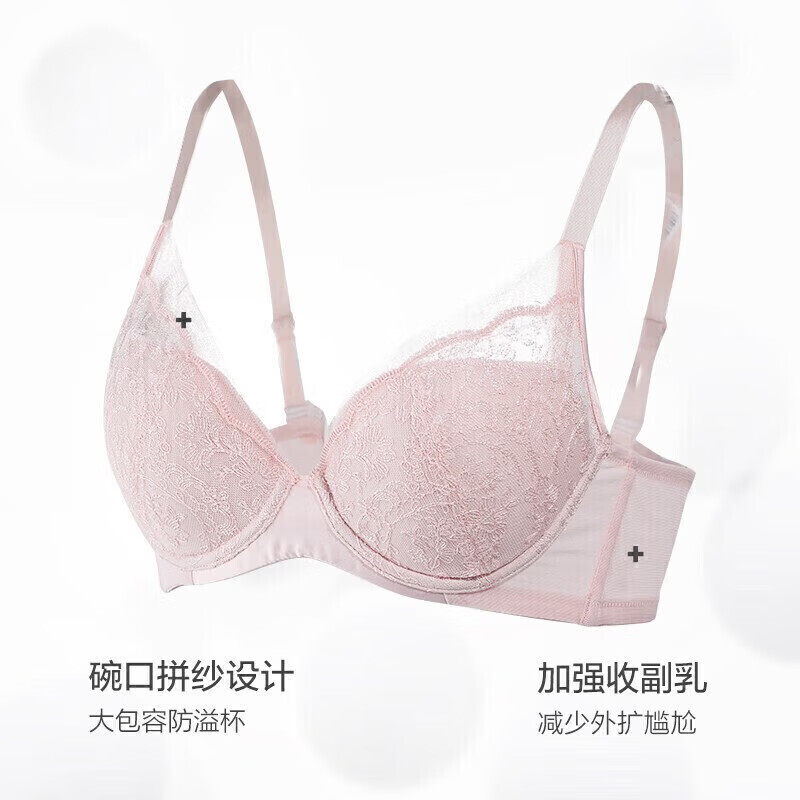 爱慕内衣女蕾丝大罩杯聚拢承托拼接软钢圈文胸胸罩初恋AM126761粉色D85价格:199.00元!