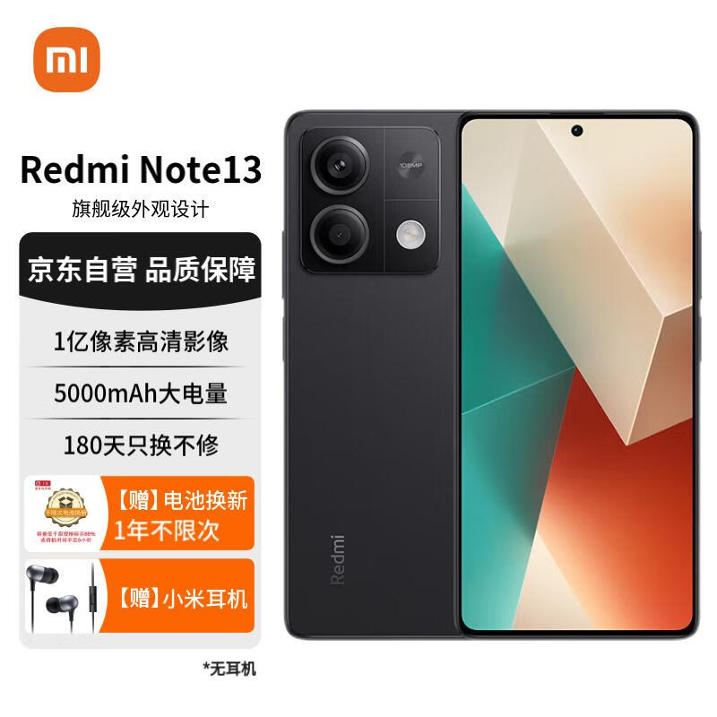 小米(MI)Redmi Note13 5G 1亿像素 超细四窄边OLED直屏 5000mAh大电量 8GB+256GB 子夜黑 小米手机红米手机价格:1279.00元!
