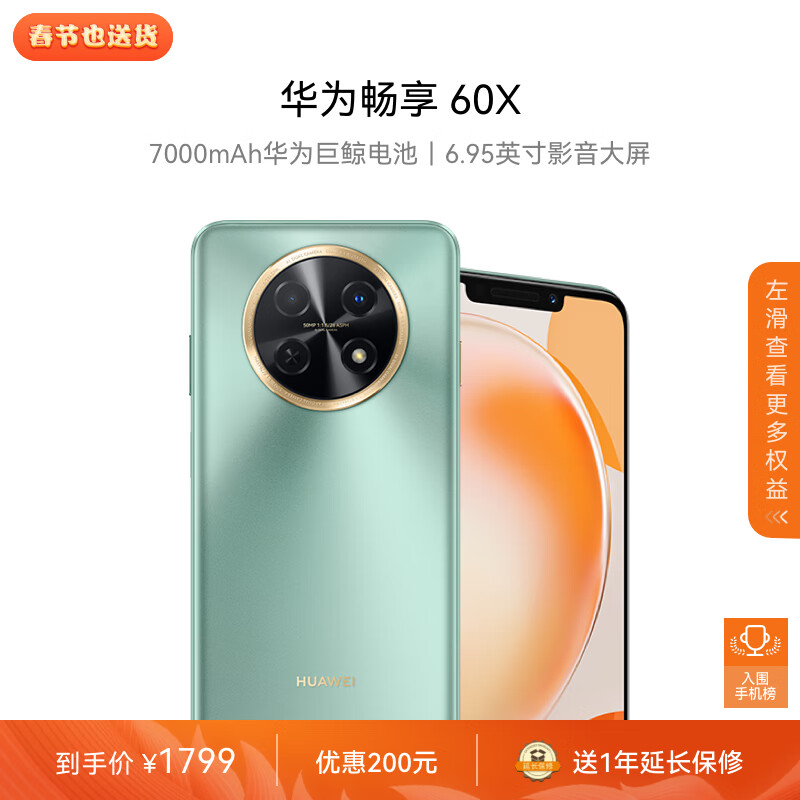 华为畅享 60X 7000mAh长续航 6.95英寸 影音大屏 256GB 翡冷翠 鸿蒙智能手机HUAWEI价格:1649.00元!
