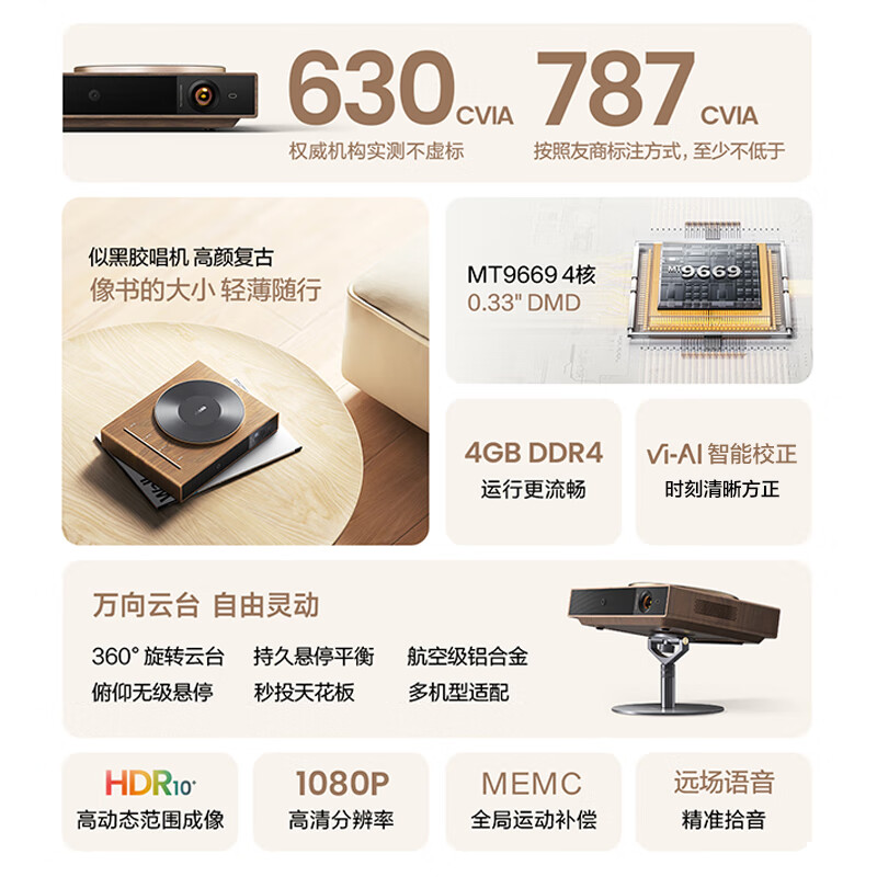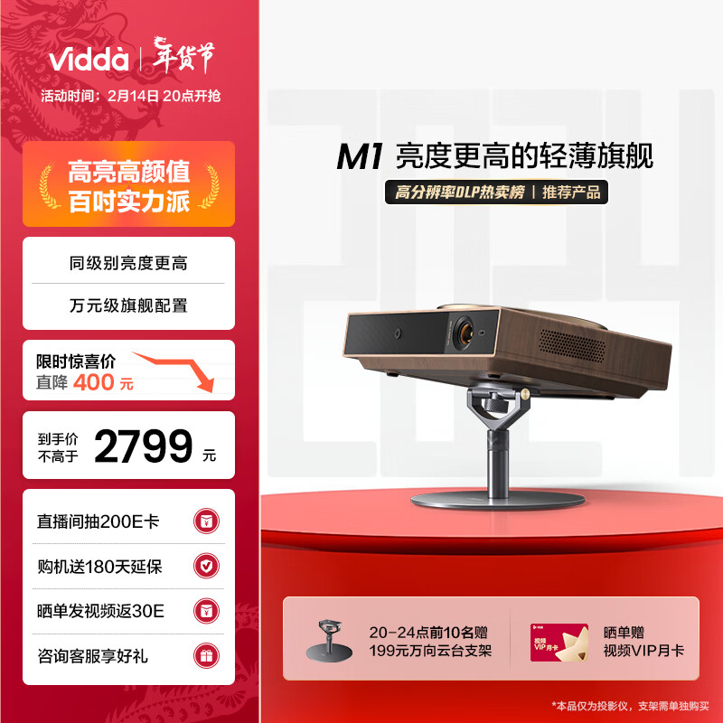 Vidda M1 海信投影仪家用 轻薄旗舰便携智能投影机(万元级CPU 同级别更高亮 Vi-AI智能校正 4G大运存)价格:2797.00元!