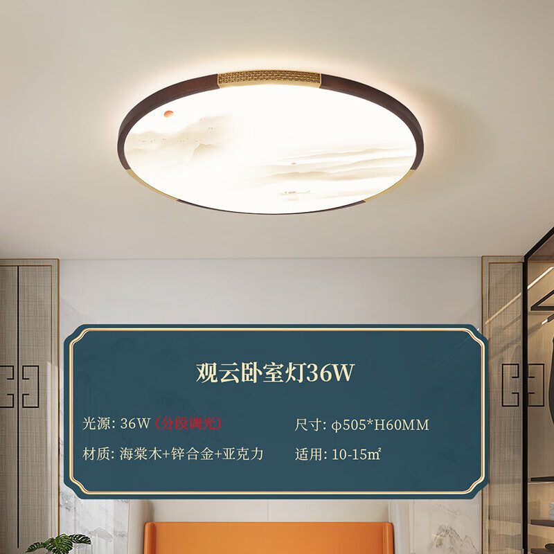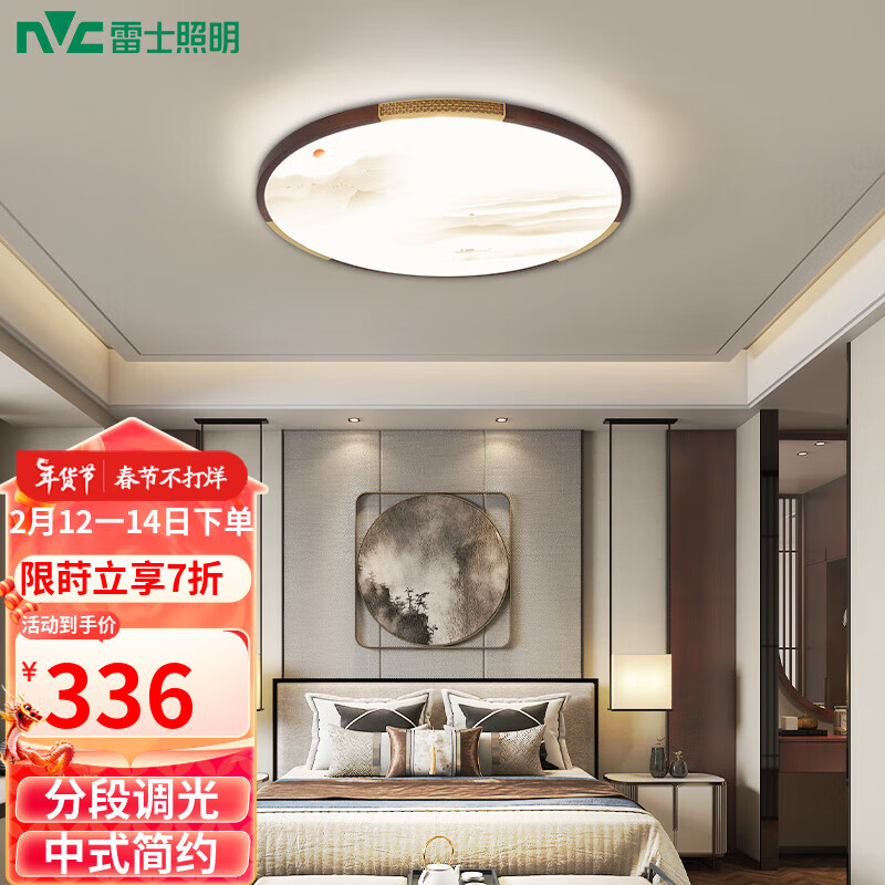 雷士(NVC)吸顶灯中国风木艺阳台过道卧室圆形灯具超薄经典复古WHXD36F/F-03价格:479.00元!