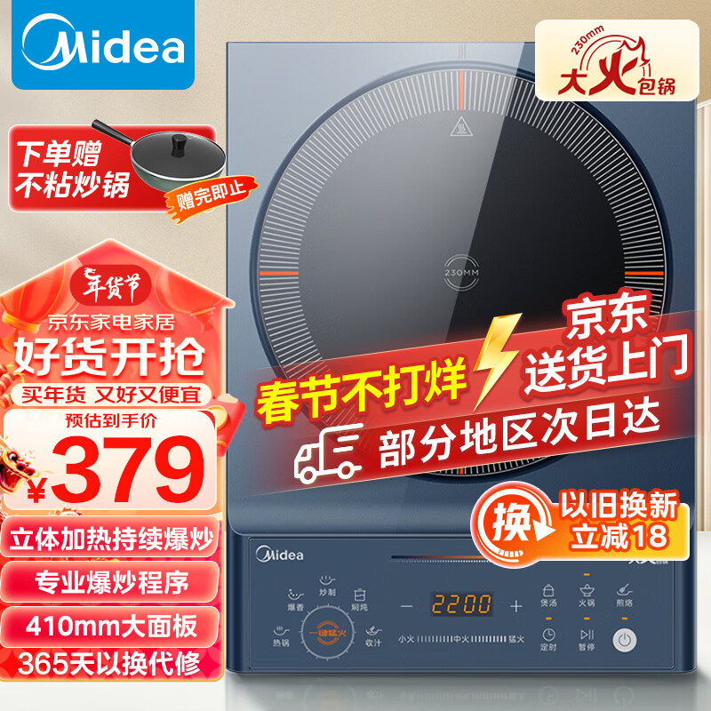 美的(Midea)电磁炉 家用大功率 匀火加热 火锅炉 九档火力 智能定时 MC-CLC2266价格:379.00元!
