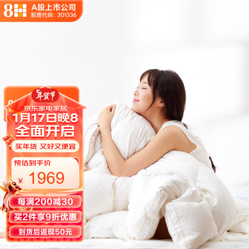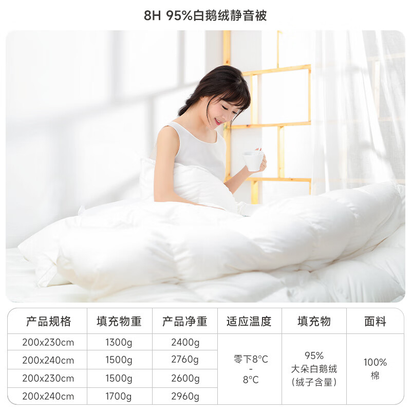 8H95%大朵白鹅绒Y1双人加厚防钻绒羽绒被芯 冬被1700g220*240cm白色价格:2299.00元!