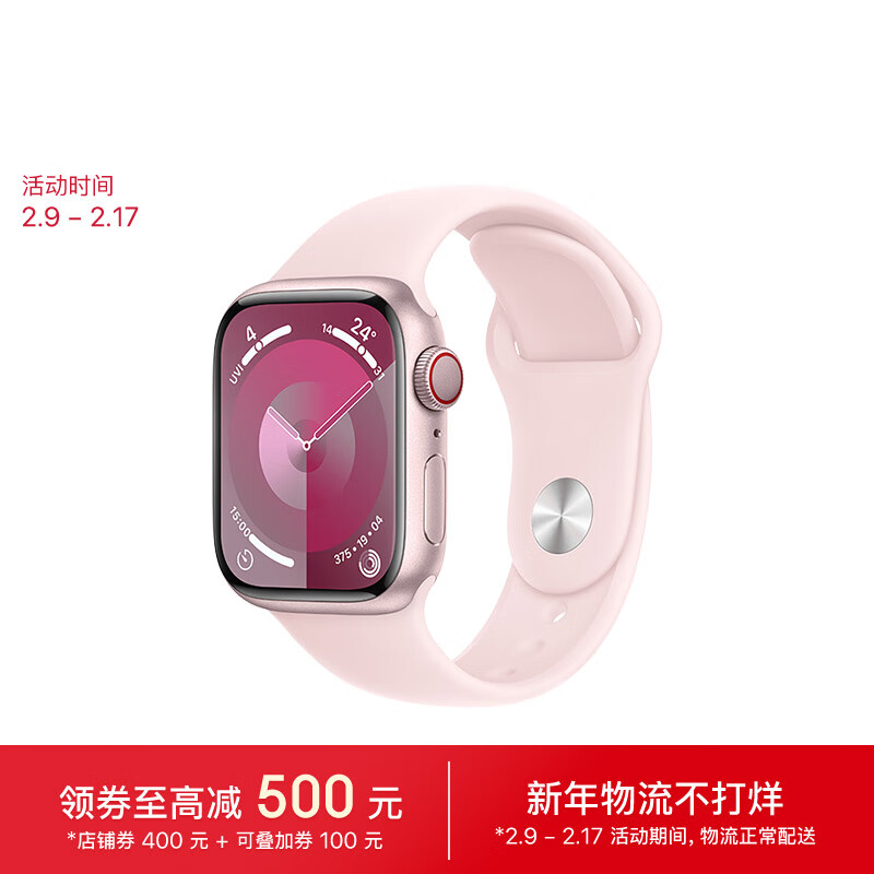 Apple/苹果 Watch Series 9 智能手表GPS+蜂窝款41毫米粉色铝金属表壳亮粉色运动型表带M/L MRJQ3CH/A价格:3799.00元!