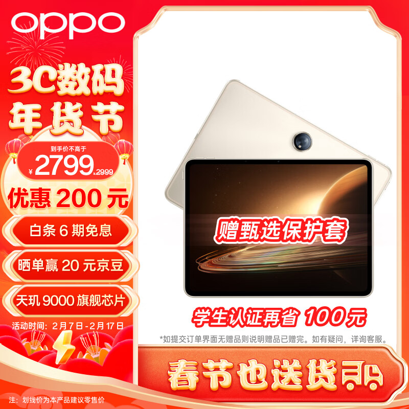 OPPO Pad 2 11.61英寸平板电脑 (8GB+256GB 2.8K超高清大屏 9510mAh)光羽金 办公学习娱乐游戏平板价格:2799.00元!
