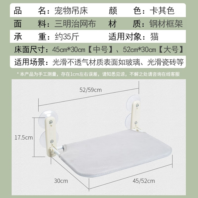派乐特猫吊床猫窝可才洗四季通用吸盘式挂窝猫咪吊床猫垫子挂床阳台吊篮 大号【52*30cm】适合35斤内价格:99.00元!