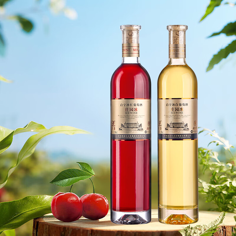 莫高(MOGAO)冰白葡萄酒红酒 甜果冰酒红白 启宇庄园500ml*2双支礼盒年货送礼价格:239.00元!