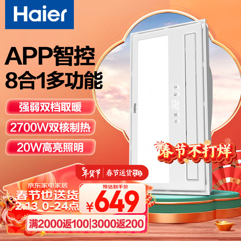 海尔智能风暖浴霸双核强暖排气扇照明一体浴室暖风机V7U1价格:799.00元!