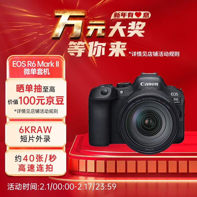 佳能(Canon)EOS R6 Mark II R6二代 新标准全画幅微单相机R62 L级24-105标准镜头套装价格:23799.00元!
