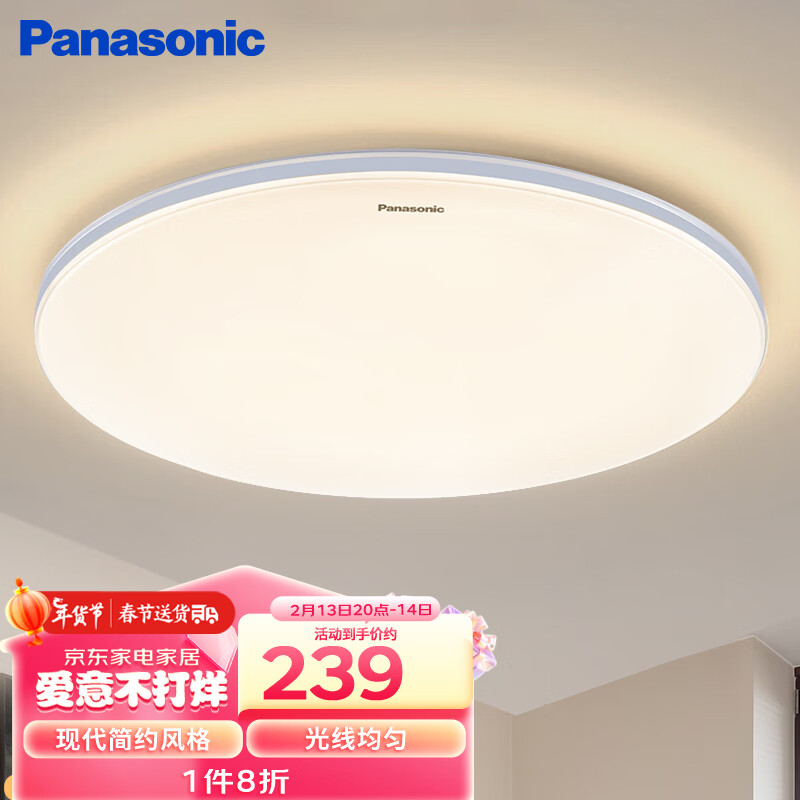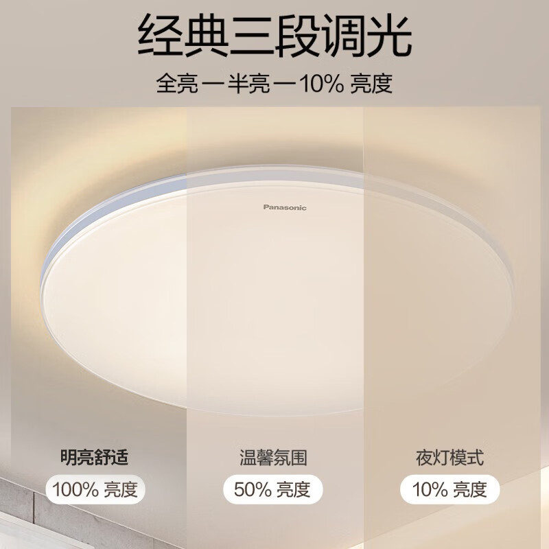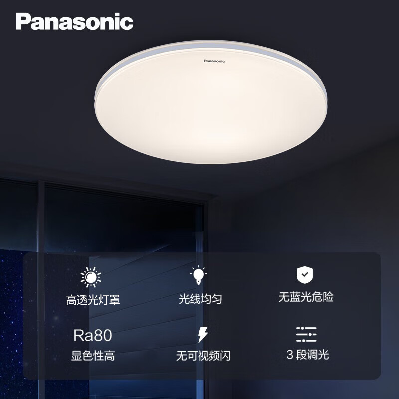 松下(Panasonic)吸顶灯新中式卧室段调光儿童房灯餐厅灯现代简约灯具银饰带 36瓦价格:299.00元!