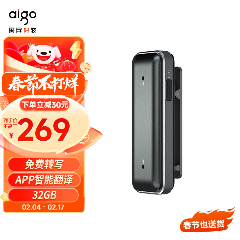 爱国者aigo SR20p智能Ai录音笔 专业高清降噪 会议录音转文字 录音器 同声传译 32G黑色价格:299.00元!