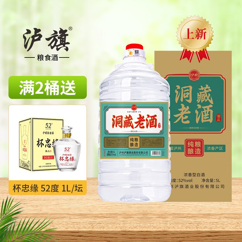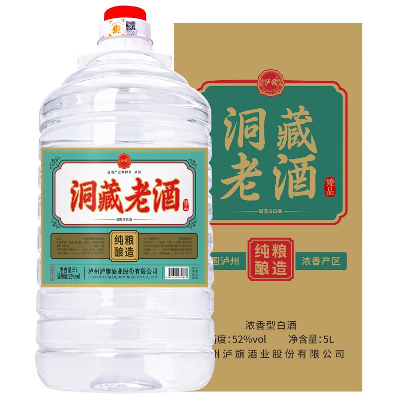 泸旗泸州红高粱酒 浓香型纯粮食白酒 可直饮高度桶装散酒泡酒 52度 5L 1桶 洞藏【臻品】新包装价格:278.00元!