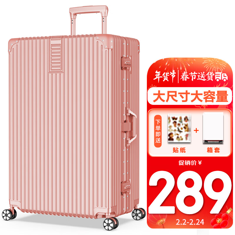 SOO行李箱男铝框商务拉杆箱大容量旅行箱密码箱女皮箱子28英寸玫瑰金价格:289.00元!