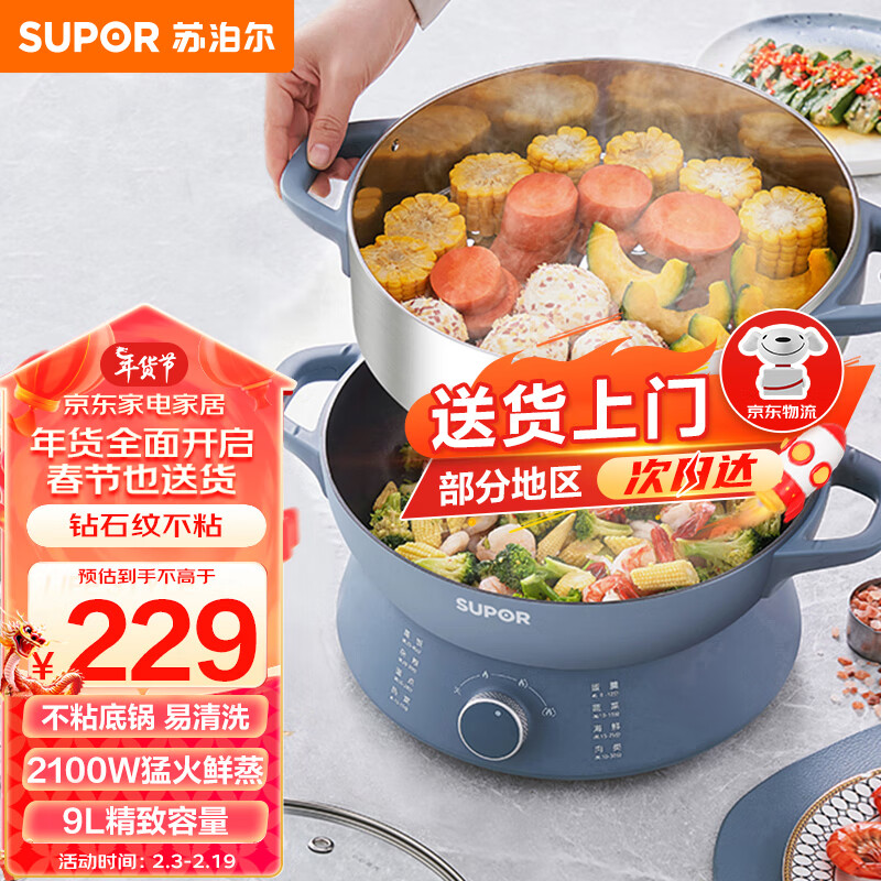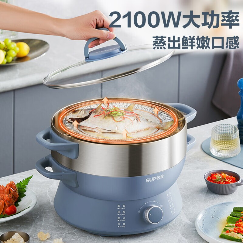苏泊尔 SUPOR 电蒸锅 多功能家用 电煮锅 早餐包子电蒸锅电热锅双层大容量 防干烧 ZN30YK825价格:229.00元!