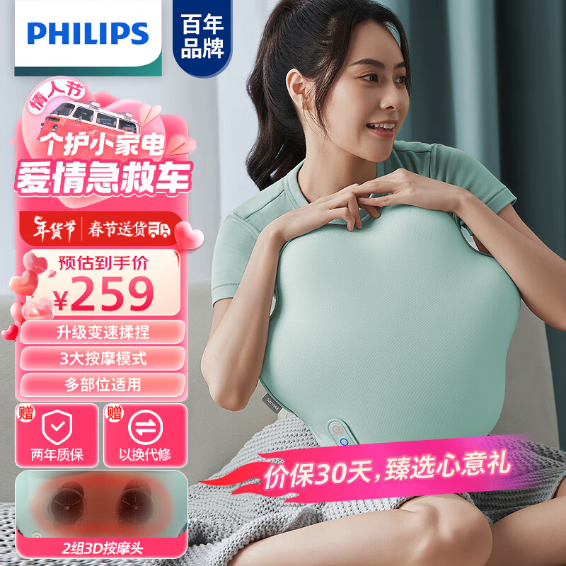 飞利浦(PHILIPS)腰部按摩器按摩抱枕靠枕办公室靠垫无线热敷腰背按摩靠垫全身肩颈椎腰背部按摩猫爪抱枕3113B价格:289.00元!