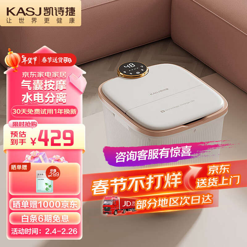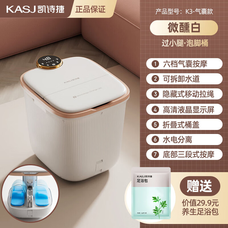 凯诗捷(KASJ)泡脚桶足浴盆全自动气囊按摩洗脚盆电动加热泡脚盆洗脚桶 生日礼物礼品送父母长辈 K3白色价格:489.00元!