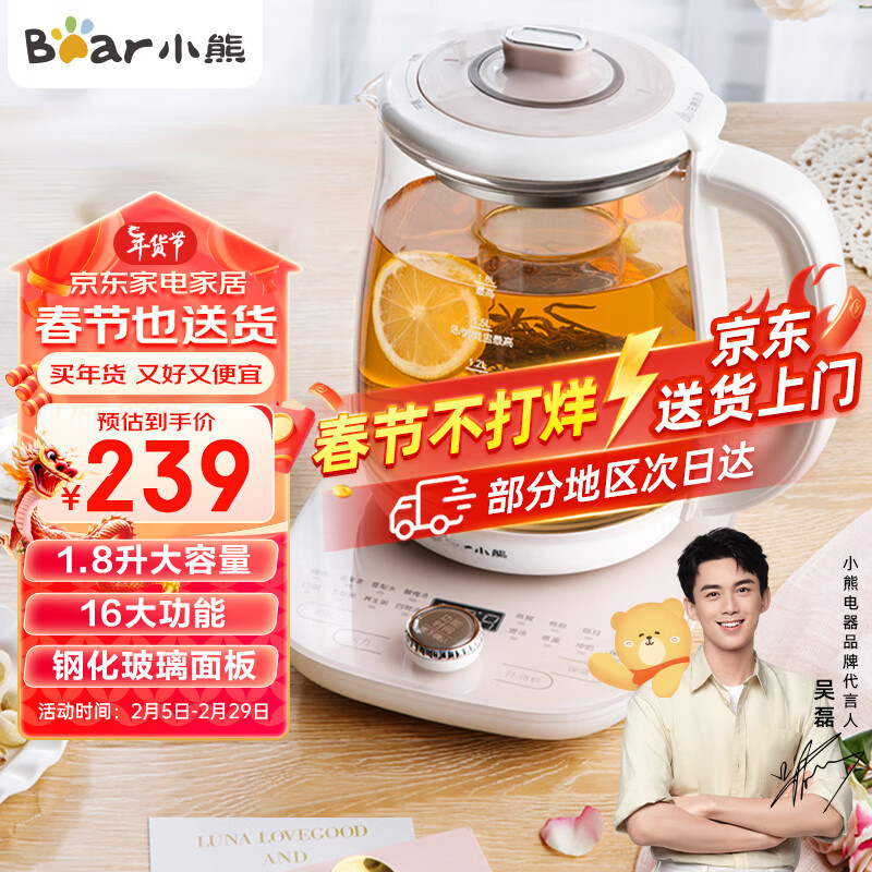 小熊(Bear)养生壶热水壶煮茶器 煮茶壶 电水壶 恒温电热水壶 保温花茶燕窝壶 YSH-C18S2带炖盅1.8L 烧水壶价格:239.00元!